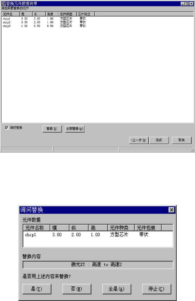 按[替换]按钮时 :对所选择的记录数据逐个替换。