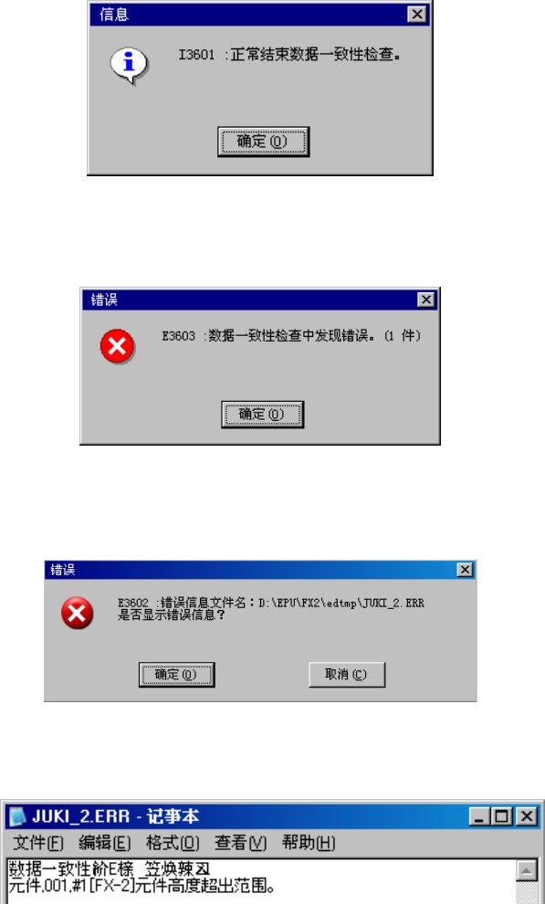 检查出错误时,按下[确定]键,弹出是否显示错误内容的提示。