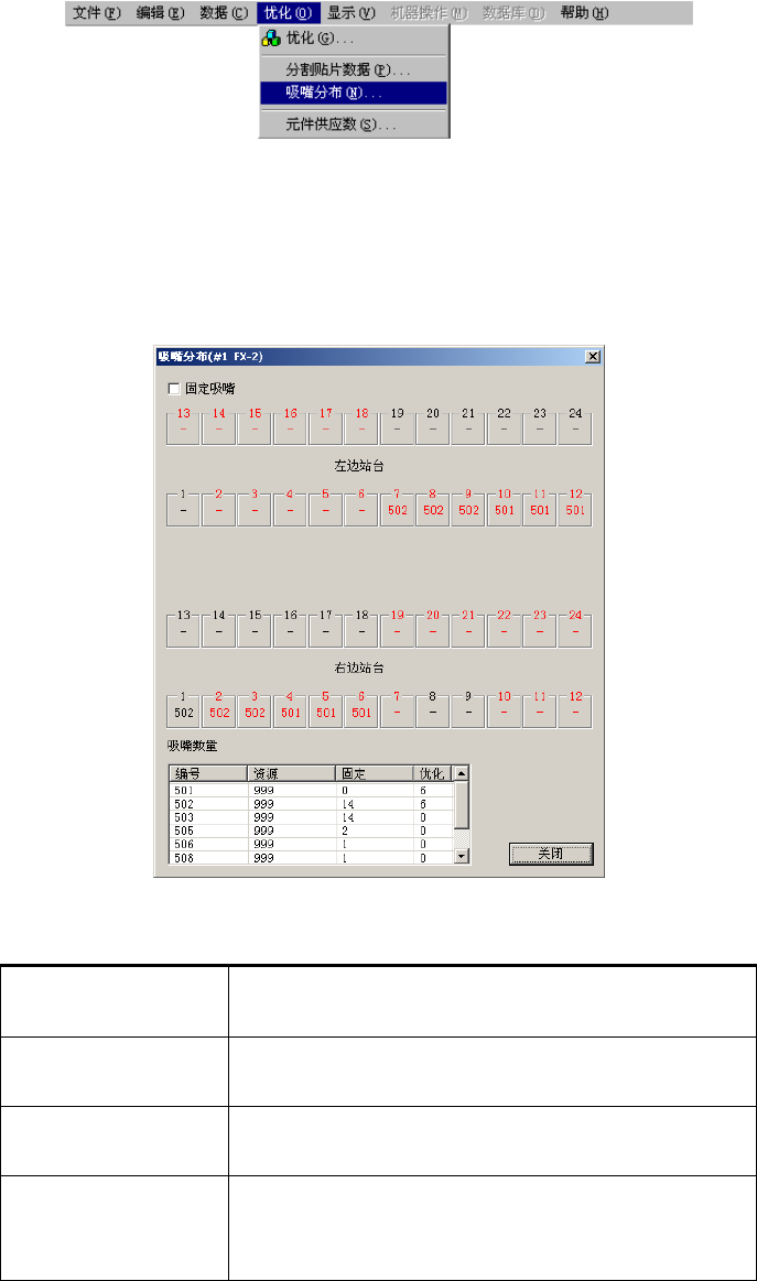 选择[吸嘴分布(N)] 后,出现如下吸嘴分布图表。