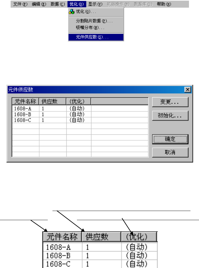 元件数据的元件名称 通过优化设置送料器数时会显示“自动”(初始值)