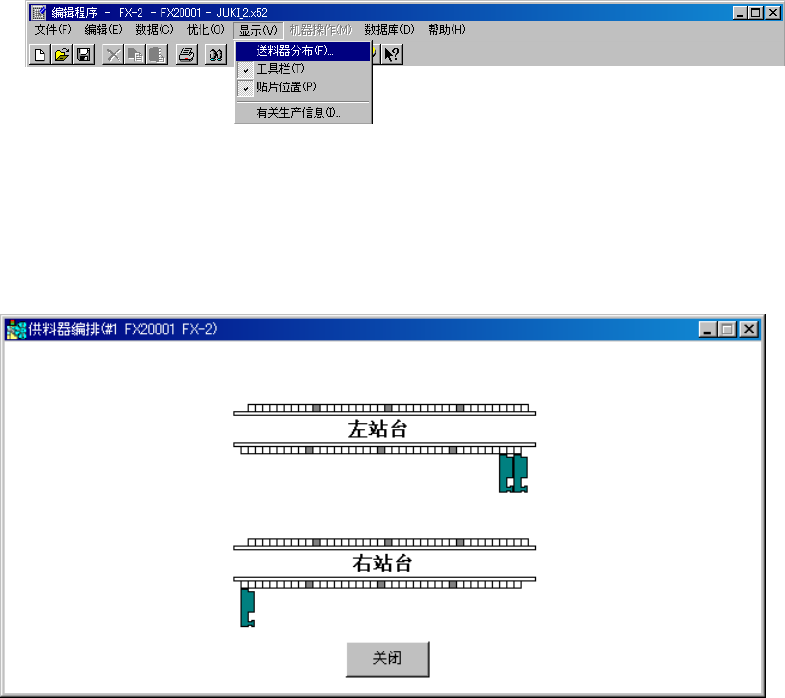 在菜单中选择[显示(V)]→[送料器分布]后,以图像形式显示各站台(即工位,下