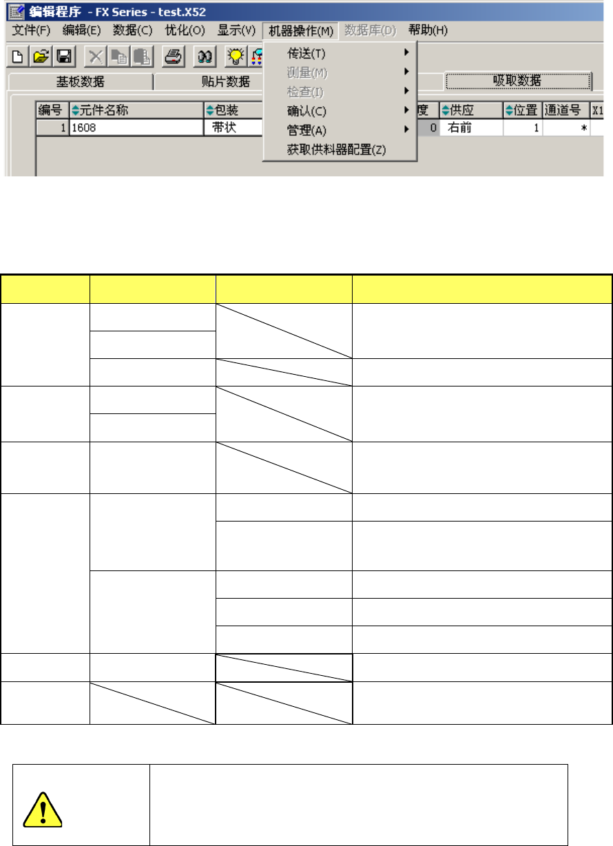 菜单上的机器操作项目及其子菜单功能简介。