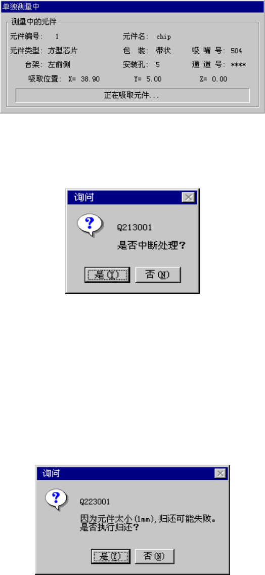 测量时逐项显示元件的内容、吸取位置、执行中的处理内容。