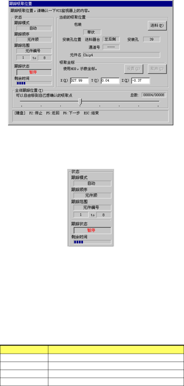 显示跟踪范围,元件的起始、结束号码,使用哪一个送料器台架。