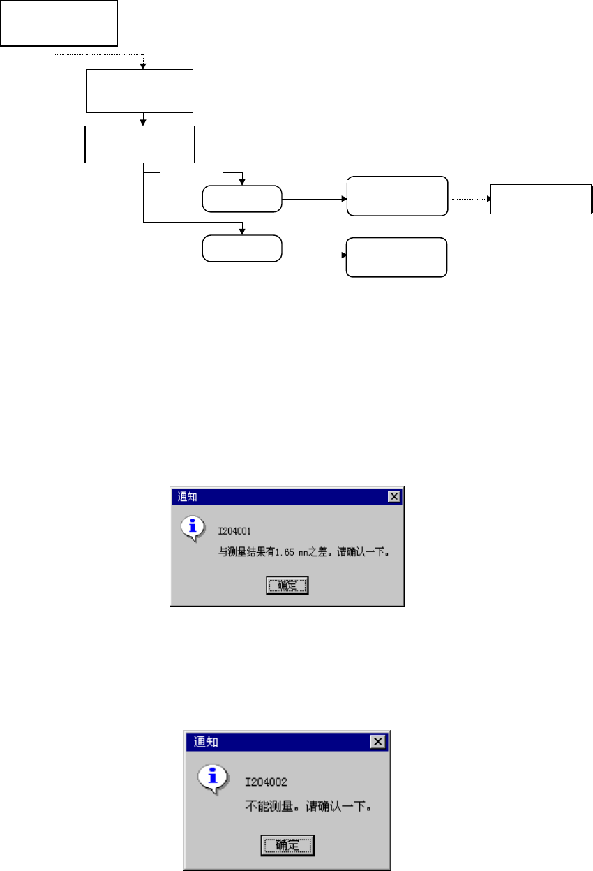 第 6 章 编辑辅助功能 跟踪吸取坐标的示教操作流程,概括如下。 吸着座標 XYZエディットボックス に入力フォーカス HOD デバイスキー押下 ENTER CANCEL ティーチング操作 [設定」ボタンまたは ENTERを押す 吸着データ変更 [取消]ボタンまたは CANCELを押す 座標確定後 图 6-5- 57 跟踪吸取示教操作的流程 (7) 吸取高度跟踪时 在各 点的运行状况 把吸取高度跟踪的条件设定为 [ 与测量数值有…