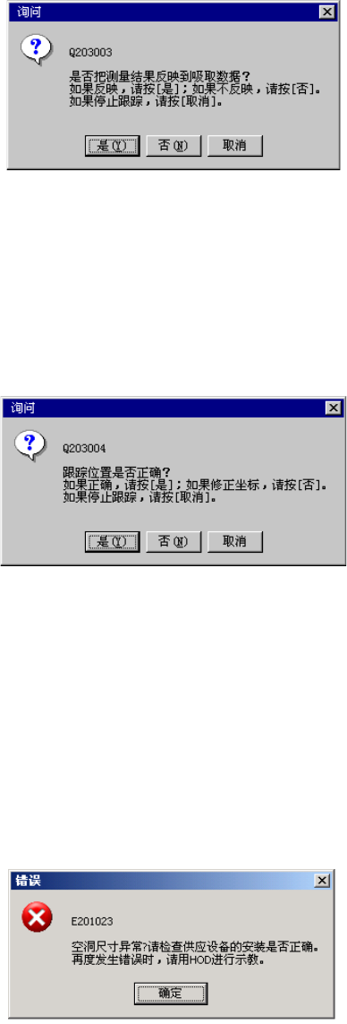 把吸取高度跟踪的条件设定为[读取检测值]时会显示对话框,询 问 [是否把测量结果反映到