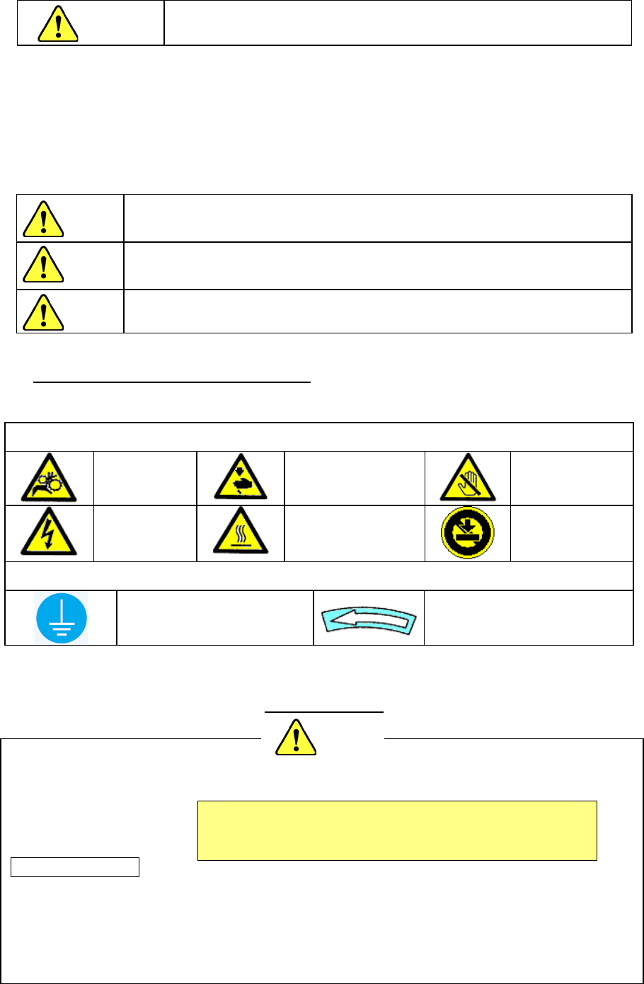 1. 为防止操作不熟悉而引起的事故,请只有受过本公司指定的操作培训、并具备适当的知识和操作技能