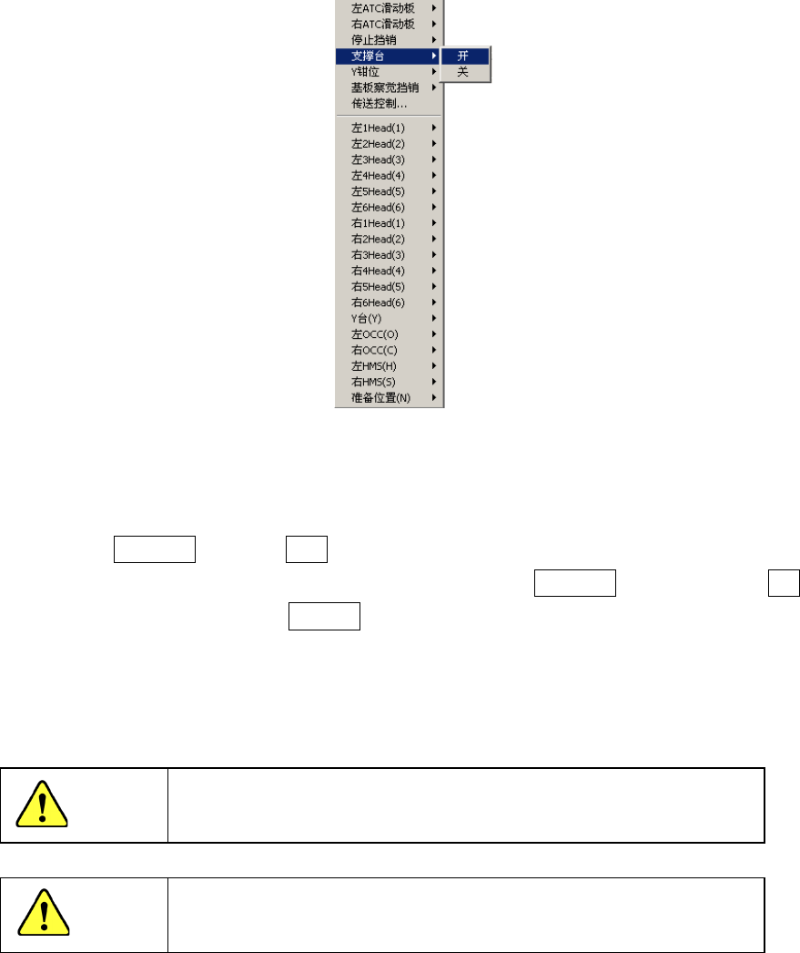 上升支撑台 。单击鼠标右键或按下[F9] 键后,显示以下弹出菜单。请点击支撑台[开] 。