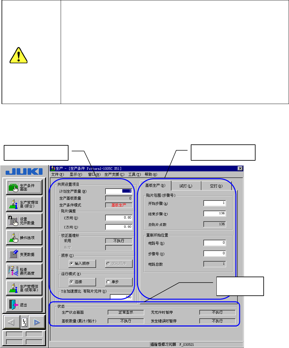 在基板生产模式中,显示生产条件画面,如下图所示。