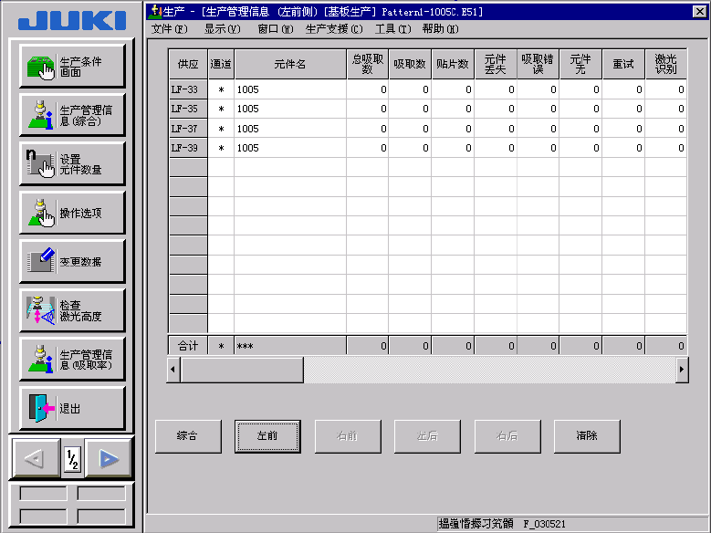 从[生产管理信息]子菜单中选择[左前],则显示如下生产管理信息画面(左前)。