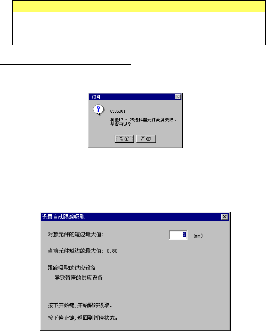 的芯片、圆筒形元件测量完高度后才可再开始生产。如测量高度失败,会显示如下对话框。