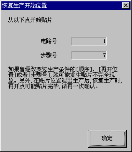 下次开始生产时,会询问是否从上述位置开始生产。但,若在编辑程序时对基板 ID、贴片点进