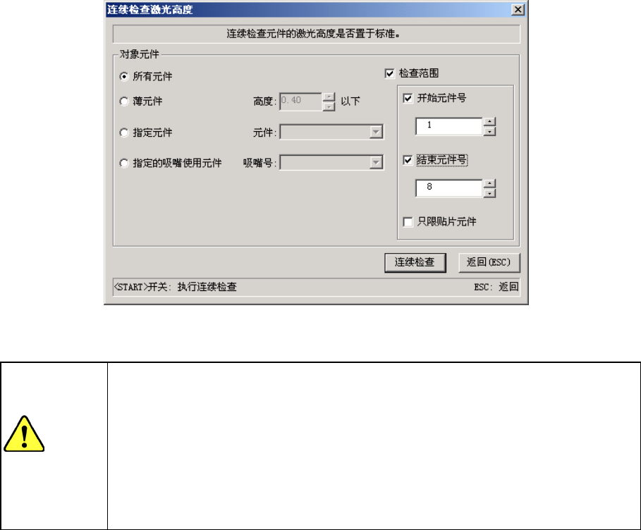 进行检查。检查时,会显示[激光高度连续检查中]对话框。