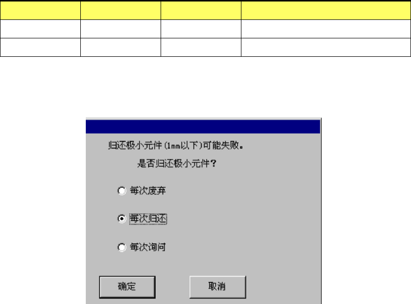 每次元件测量后,凡是 1mm 以下的元件,显示询问对话框。