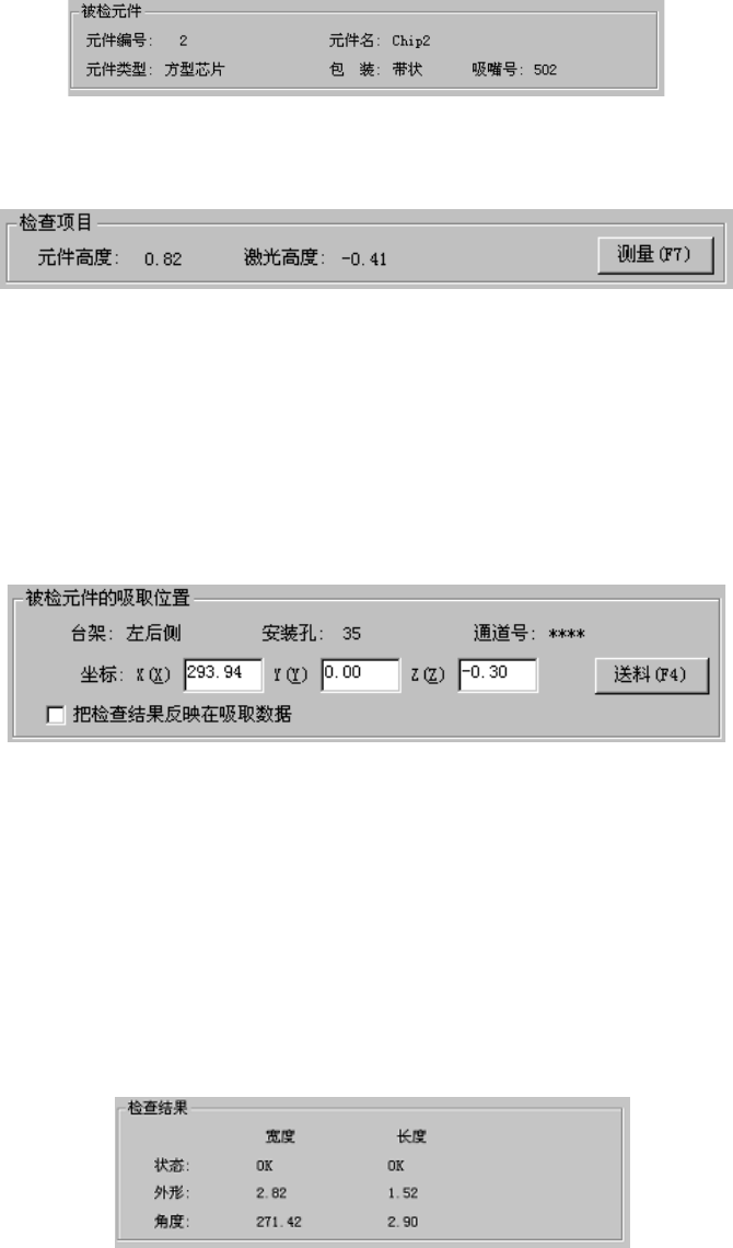 第 8 章 生产 ① 状态 OK :定心成功 数字:定心失败 ( 数字表示激光状态的代码编号 ) ② 外形 显示定心成功时激光测出的宽度。 ③ 角度 显示定心时的元件角度。 6) 快捷键 在单独检查结果画面中,可用以下的快捷键进行操作。 键盘 操作面板开关 HOD 键 运行 F10 - ENTER 实行单独检查 F7 - - 测量检查值 F4 - - 送料器顶推 F5 - PREVIOUS 上一个代替元件 F6 - NEXT 下一个代替…