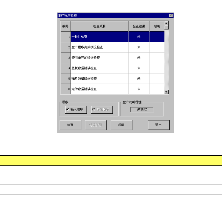 )]-[生产程序检查]启动生产程序检查后,可显示检查项目的列表和检查