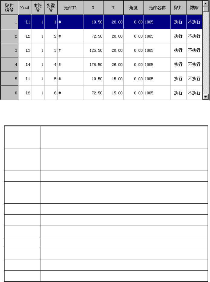 根据顺序,按贴片编号顺序,显示贴片点的有关信息。