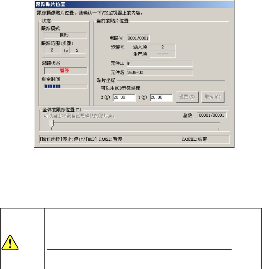 暂停跟踪贴片时,按下<START> 开关后,继续进行跟踪处理。