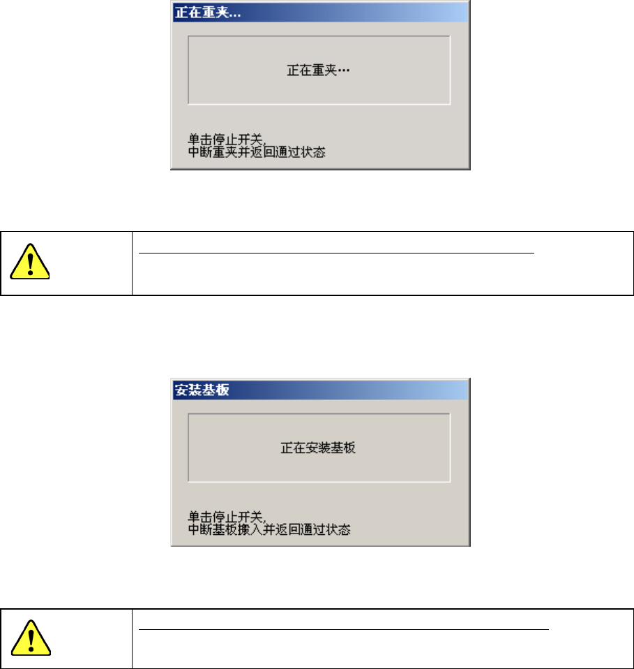 第 8 章 生产 8-6-2-4 正在重夹对话框 正在重夹中,显示以下对话框。 图 8-6- 13 正在重夹对话框 按下 <STOP> 开关后,返回[跟踪贴片]对话框。 选择 <STOP> 开关后 [ 正在重夹 ] 即使中断,设备仍在继续运行。 即使在跟踪中断的情况下,为防 止发生人身伤害,设备运行中切勿把手伸入 设备内部,脸和头也不要靠近设备。 8-6-2-5 传入基板对话框 执行基板传入时,显示以下对话框。 …