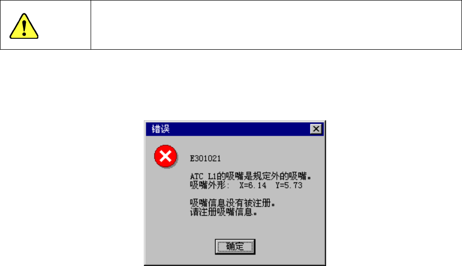 * 当取得的吸嘴外形为规定以外时,会显示出吸嘴信息未注册对话框 (图 9-4-9 吸嘴信息未注