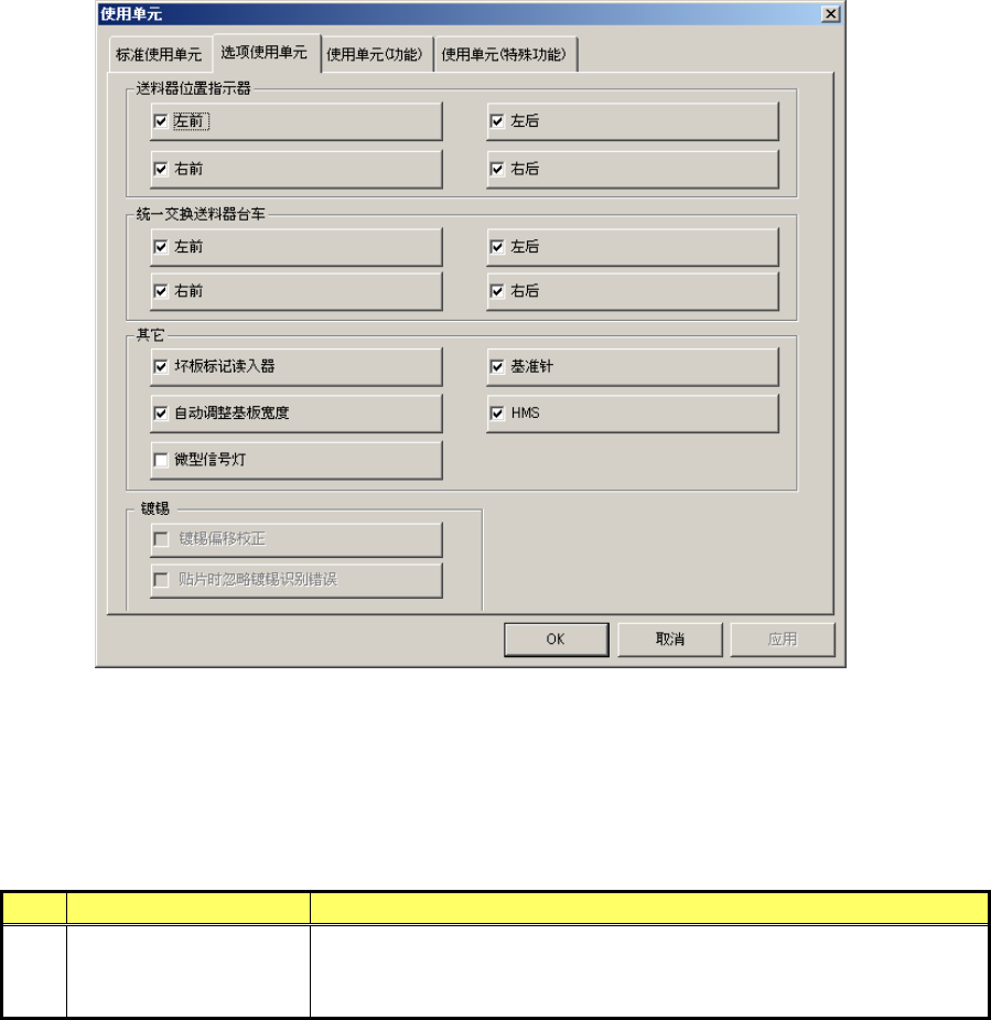 在[选项使用单元]对话框中的设置项目如下表。