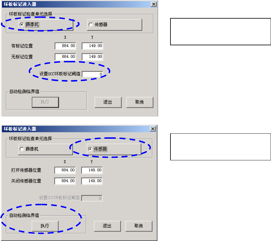 选择坏板标记检查单元,是使用摄像机、还是使用坏板标记读入器。无论选择哪种,坏板标记的