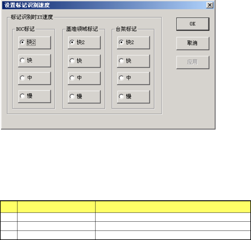 设置在 BOC 标记、基准领域标记、台架标记的各识别动作中的 XY 轴速度。