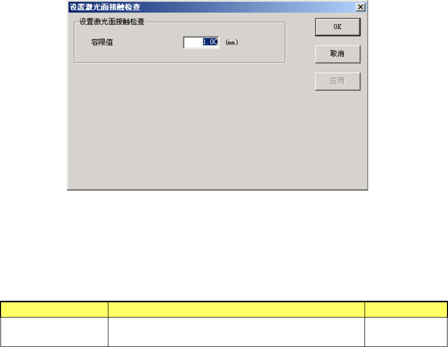 选择检查激光面接触后,会显示如下设置激光面接触检查对话框。