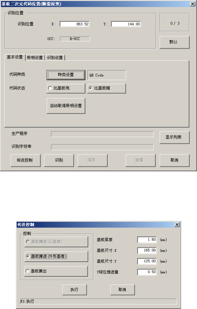 在基板 2 次元代码位置设定对话框中选择「识别」。 识别的基板代码如果在程序下载中已被关联,