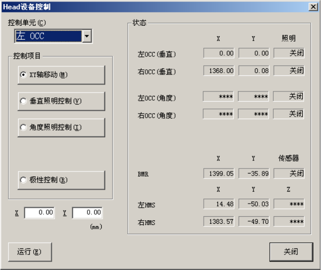 从菜单栏中选择[控制]→[Head]→[Head 设备控制]后,显示如下[Head(贴片头)设备控制]对话框。