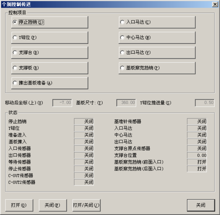 选择菜单栏中[控制]→[传送]→[个别控制]后,显示如下图的[个别控制传送] 对话框。