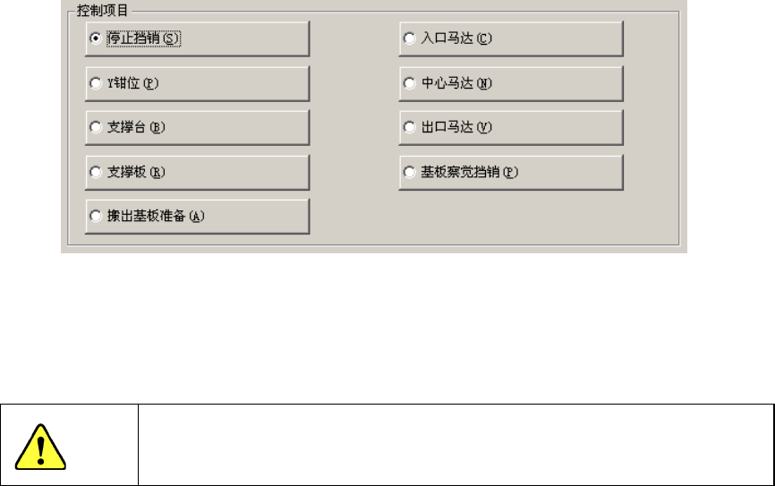 选中控制项目 [停止挡销]时,选择[打开]按钮、[关闭] 按钮、[打开/关闭] 按钮,或按