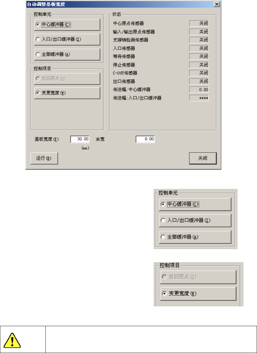 缩短宽度,或 Y 台不在可传送的位置上时,应先移动 Y 台后,再调整宽度。