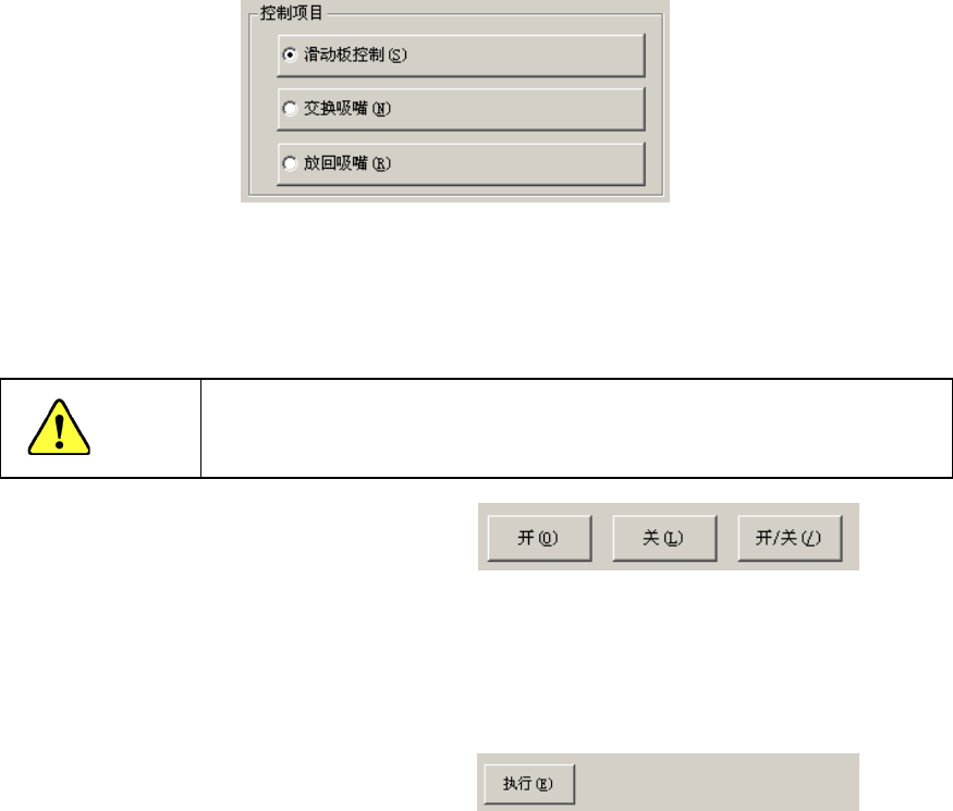选中[控制项目]的[滑动板控制]时 ,选 择 [开]按钮、[关]按钮、[开/关]按钮,或按[F3]