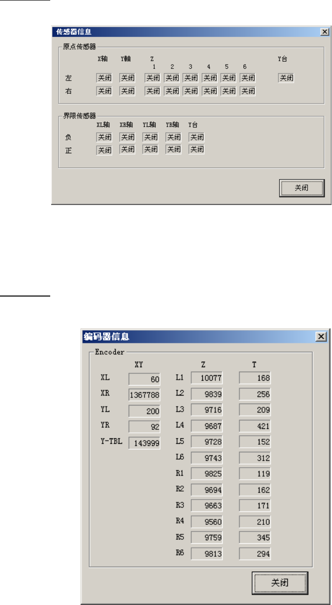 用打开/关闭按钮,显示原点传感器、界限传感器状况。