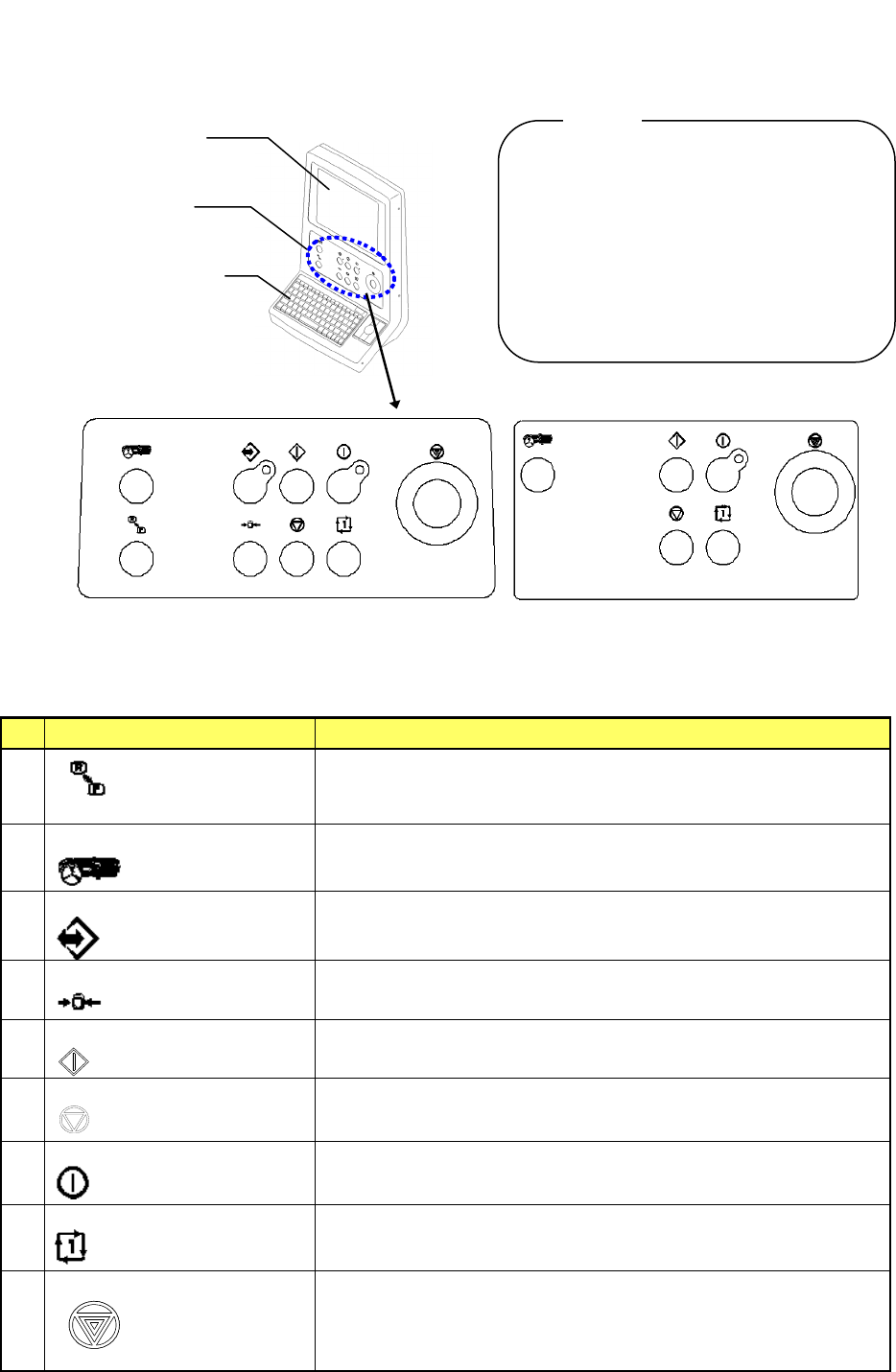 第 2 章 基本操作 2-3-5 操作台 < 前 > < 后 > 图 2-3-4 操作台装置及操作板概略 图 表 2-3-3 开关功能概要 No 开关名称 功能 1 ・切 换键盘 可以〈前〉 〈后〉方 ・按此 开关时,开关亮灯。 2 FEEDER 送料器 ・切 换送料器单元的有效 / 无效。 ・按此 开关 ,开关灯点亮时 3 ONLINE 联机 ・ 设备与 HLC 、 IS 或 IFS - NX 联机时使用。 ・…