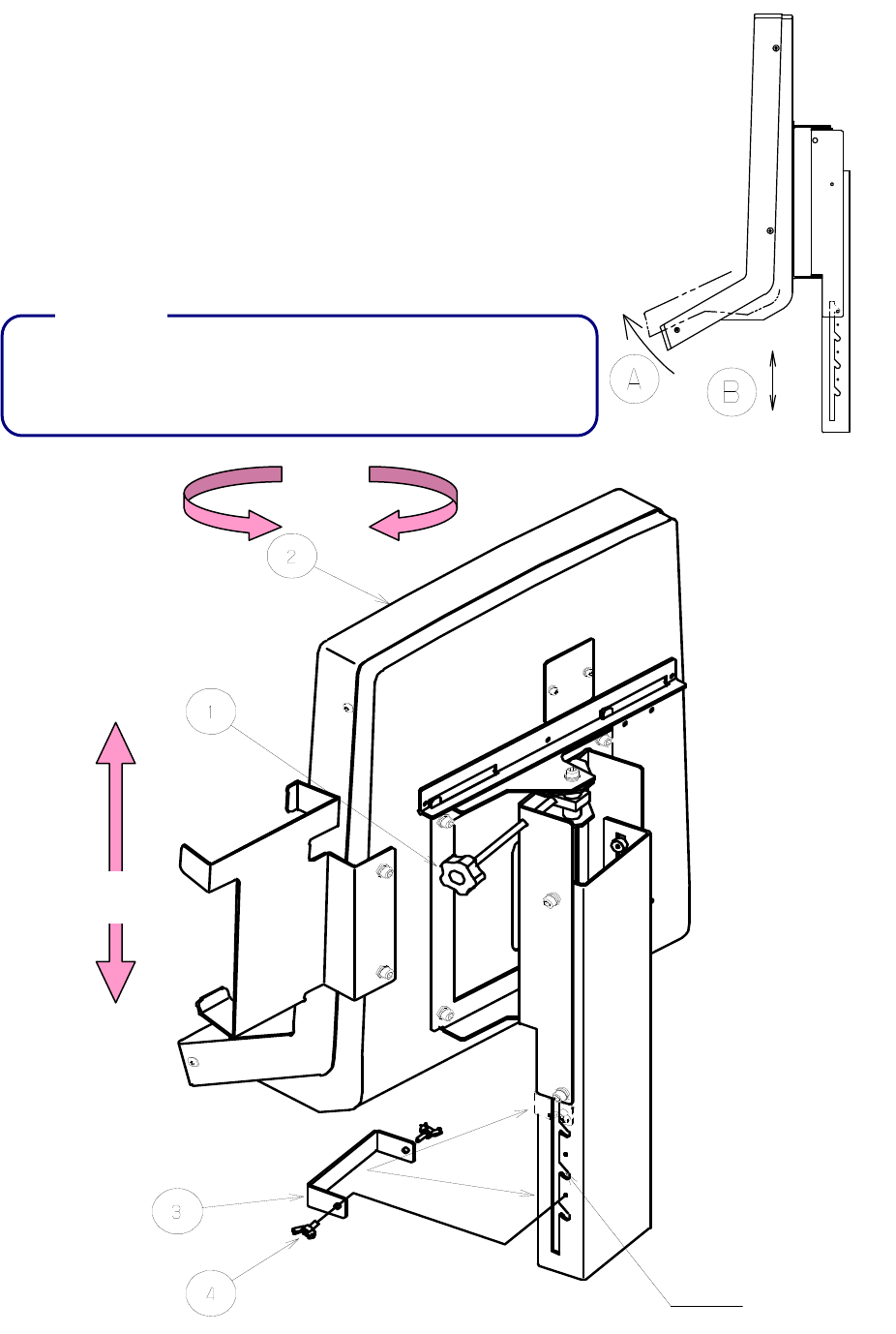 后,即可按B上下方向调整高低,固定时请对准4个槽沟或