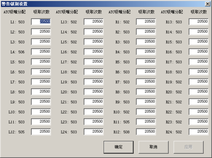 在菜单栏中选择[数据]→[警告级别设置]→[各吸嘴]后,显示下图的[警告级别设置] 对话框。在