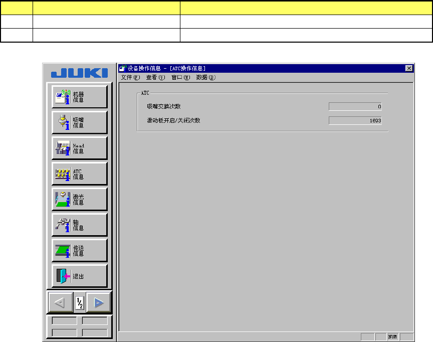 在菜单栏中选择[窗口]→[其它]→[ATC 运行信息]后,显示[ATC 运行信息]画面。