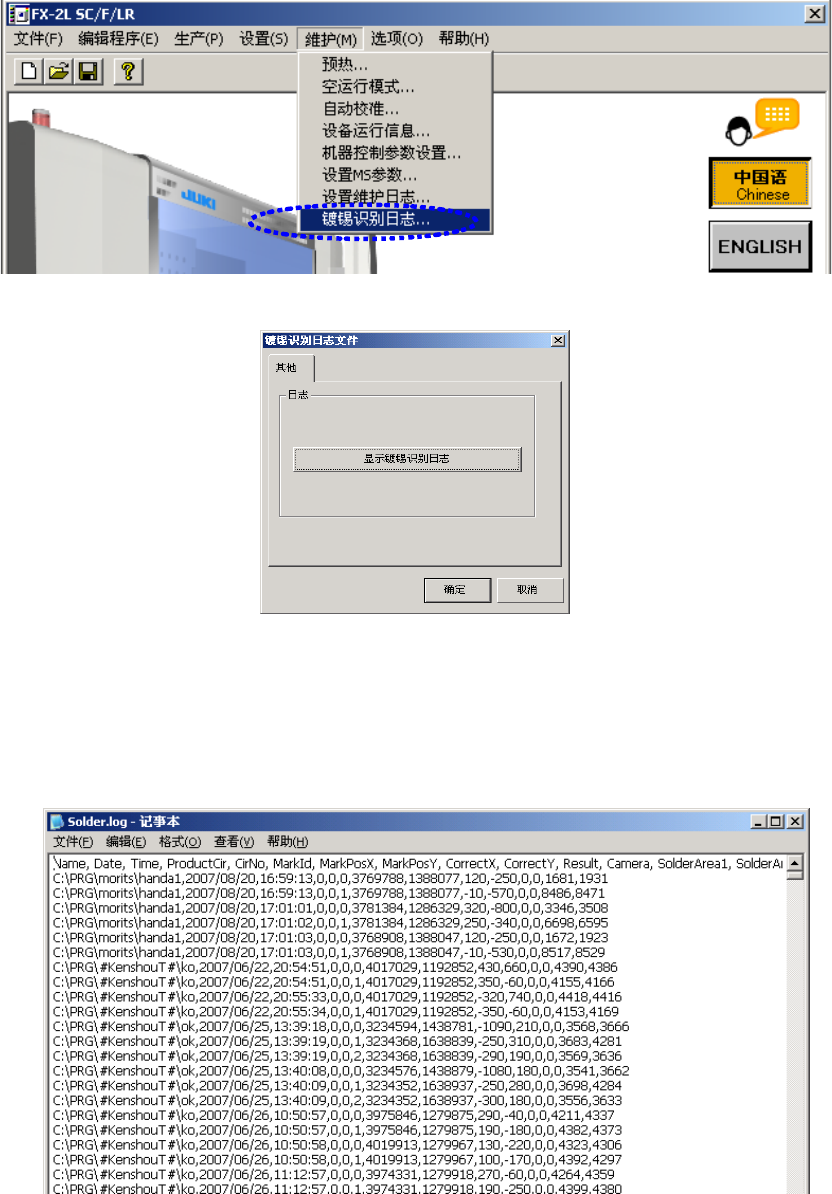 按下[显示镀锡识别日志]按钮,选择[确定]后,即可以文本格式把日志信息保存下来。