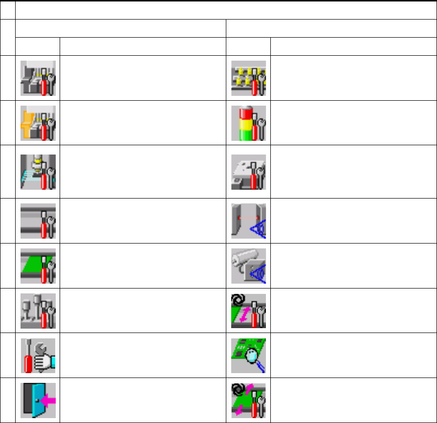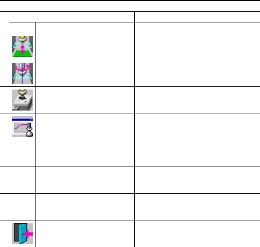 第 3 章 菜单和命令按钮 3-2-5 自动校准 自动校准画面上的各项命令按钮及处理功能,图示说明如下。 页 1/2 2/2 图标 名称和概要 图标 名称和概要 1 激光传感器高度 2 吸嘴旋转中心 3 贴片头偏移量 4 真空校准 5 6 7 8 退出 返回桌面。 3- 15