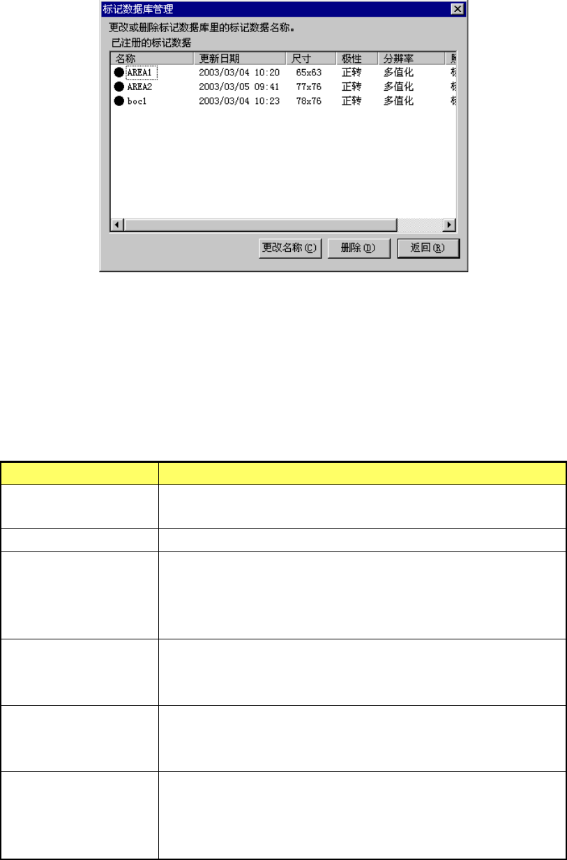 以一览表显示已注册的标记数据库中的标记数据。