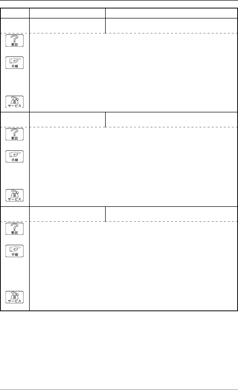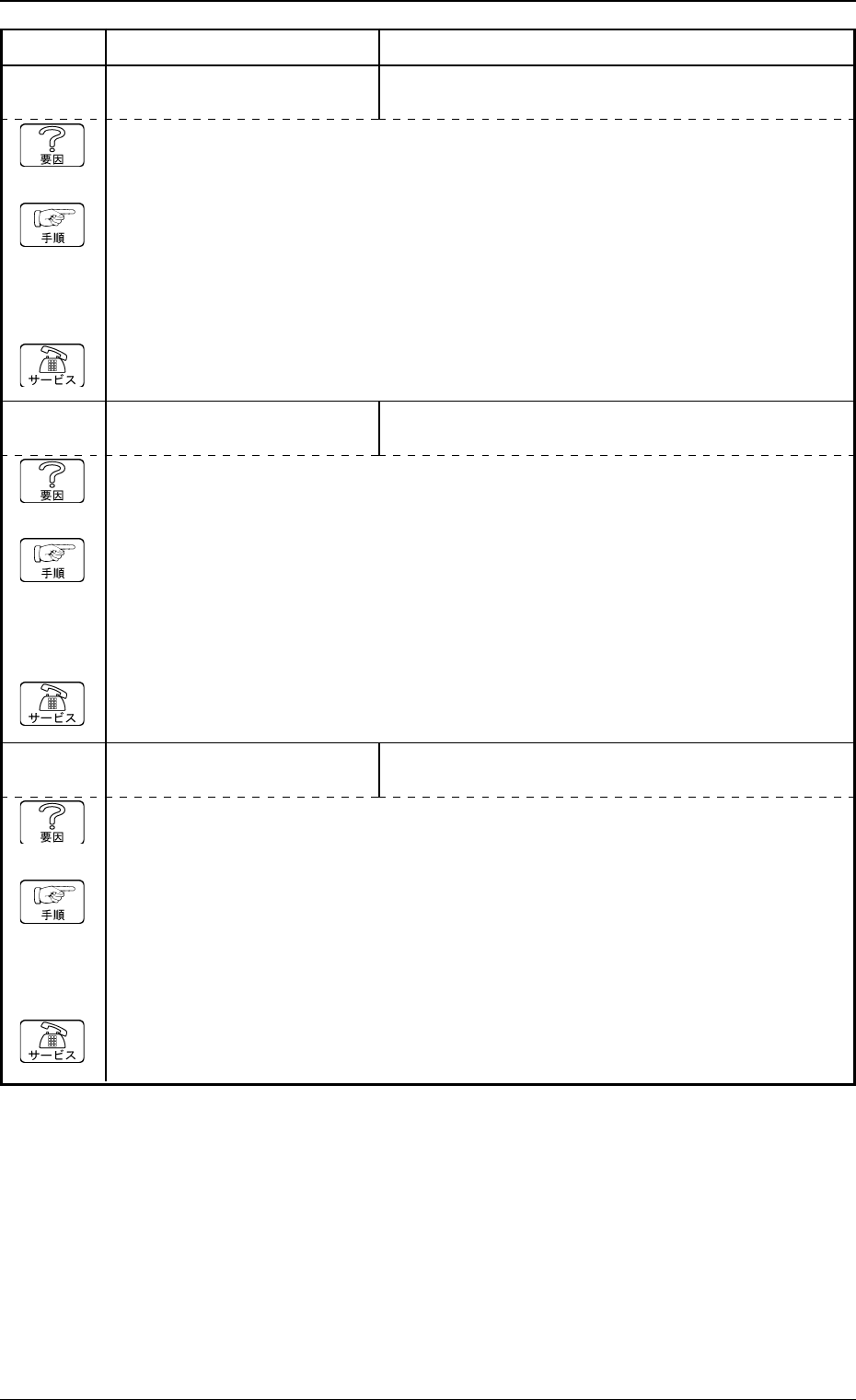Tg0854-PM-ER 異常コード 異常コード 異常コード 異常コード 異常コード A A A A A 部表示 部表示 部表示 部表示 部表示 B B B B B 部表示 部表示 部表示 部表示 部表示 0304-001 2-89 3. 異常表示からのトラブルシューティング ( 要因 1 ) 装置の自己診断によるメッセージです。 ( 要因 1 の復帰方法 ) 復帰手順 ( 1 )[ 警報解除 ] キーを押し、 ブザー音を停止させてくだ…