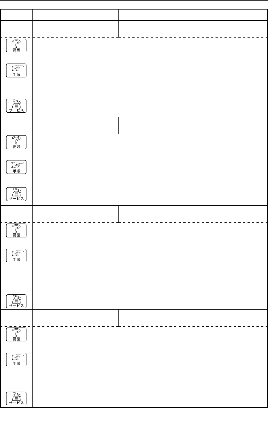 Tg0854-PM-ER 0304-001 2-109 異常コード 異常コード 異常コード 異常コード 異常コード A A A A A 部表示 部表示 部表示 部表示 部表示 B B B B B 部表示 部表示 部表示 部表示 部表示 3. 異常表示からのトラブルシューティング 60 05 05 安全回路作動 ( 要因 1 ) 装置の自己診断によるメッセージです。 ( 要因 1 の復帰方法 ) 復帰手順 ( 1 )[ 全原点復帰 ] ボ…
