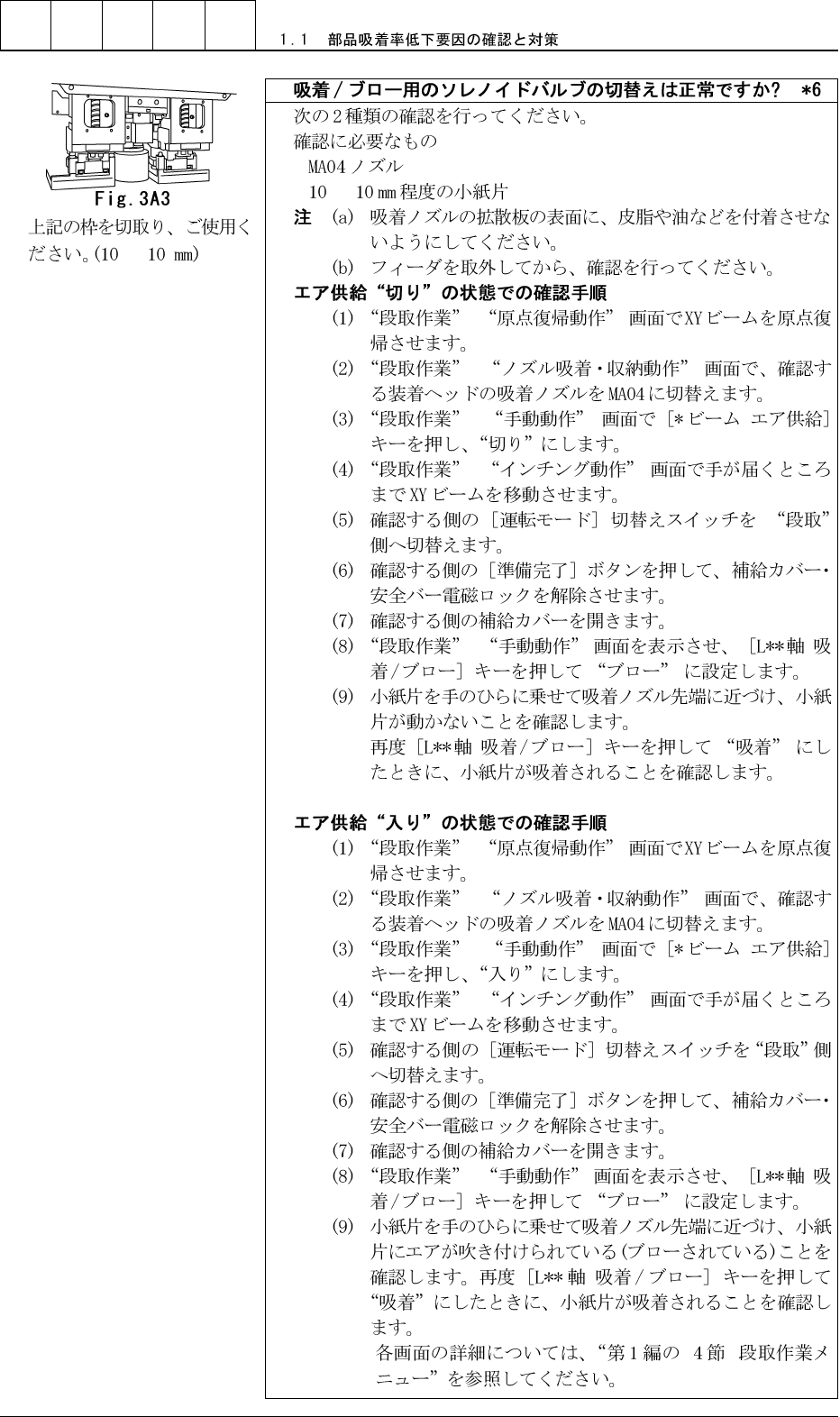 1 . 1 部品吸着率低下要因の確認と対策