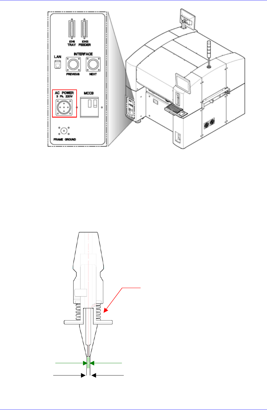 设备的启动及生产 2-3 元件的供应是否正常。 安全盖的开放与否 检查正 / 背面的安全盖 (Door) 是否已打开,如果是 开的,就关上它。 设备周围环境的安全 检验 打开 Isolation 开关之前 ,最终检查有没有人员正在设备 上进行作业。 注 意 如果在打开设备的电源打开之前没有检查电源及设 备内部, 可能造成设备的损伤或破坏。打开设备的电源之前 必须检查 设备内部及其周围环境。 2.1.2. 打开主开关 打开设备正面…