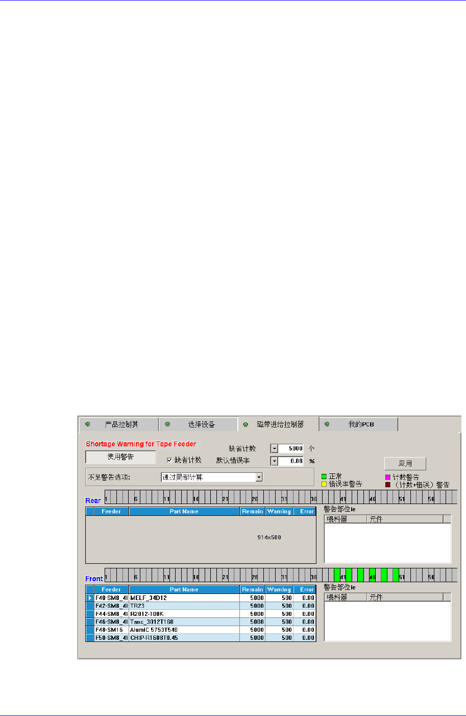 给 Tape Feeder 供给的部件残存小于这里设定值时,显示部件残存不足警告