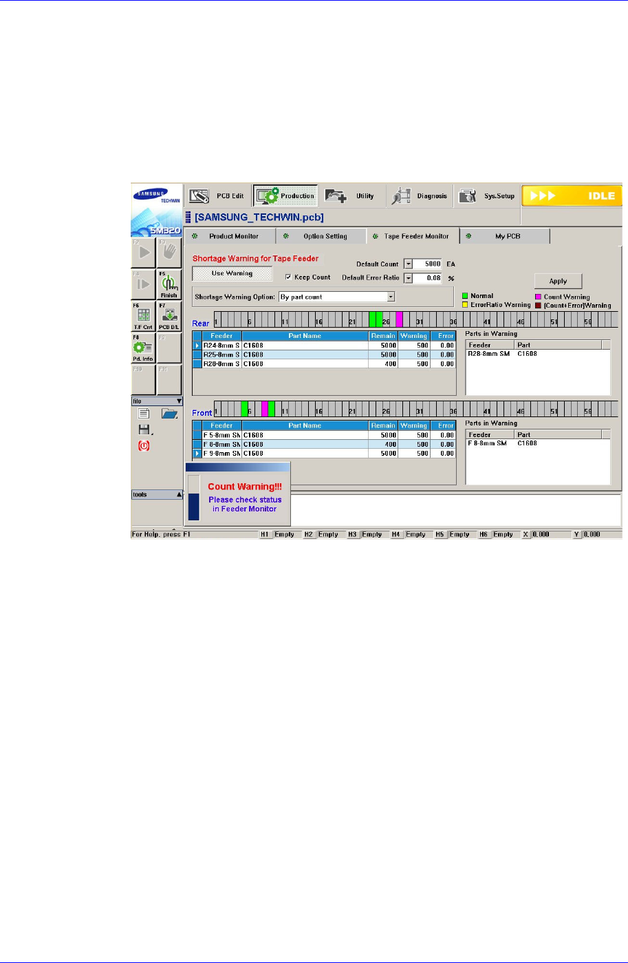 给 Tape Feeder 供给的部件残存小于这里设定值时,显示部件残存不足警告