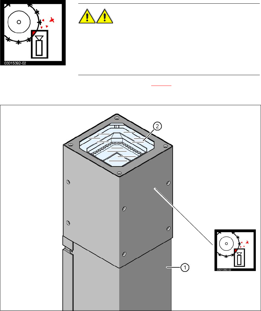 Fig. 2.2 - 11 Cartello di avvertenza "Collisione con la testa" sulla videocamera IC della TwinStar