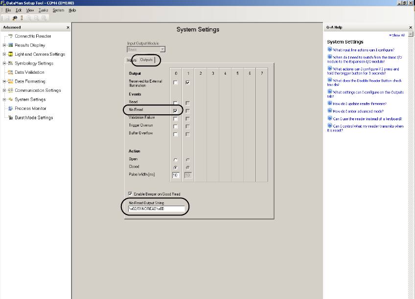 : Change to the view "System-Settings" => "Output" and activate the No-Read function:
